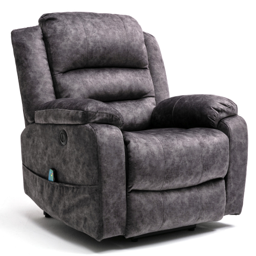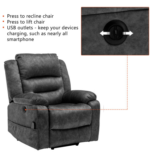 FANTASTIC SEATING OPTION: German brand OKIN motor electric massage recliner will upgrade your living decor for added comfort, is perfect for older people and individuals with back pain to help them stand up easily without adding stress to back or knees. USB CHARGING PORTS & SIDE POCKETS: This chair has dual USB outlets that keep your devices charging and dual side pockets for small items within reach. Remote control provides more convenience. (Notes: The USB ports ONLY for low-power devices, such as iPhone, iPad.) SOFT OVERSTUFFED PADDING: Skin friendly touch finish, extra thick sponge padding, high back and wide armrest provide a very comfortable feel to relax. Power lift recliner chair can reclines up to 130 degrees, that will be a good angle to take rest. EASY TO USE: Extending footrest and reclining feature allows you to fully stretch and relax, ideal for watching television, sleeping and reading. Side pocket design create a very convenient place for you to put remotes and other small belongings. Easy to assemble and all the required accessories are included. STURDY CONSTRUCTION: Steel structure and Anti-back-tipping chair base design make the entire chair stronger and safer, supports up to 450lbs. Please feel free to contact us if you have any questions for this product.