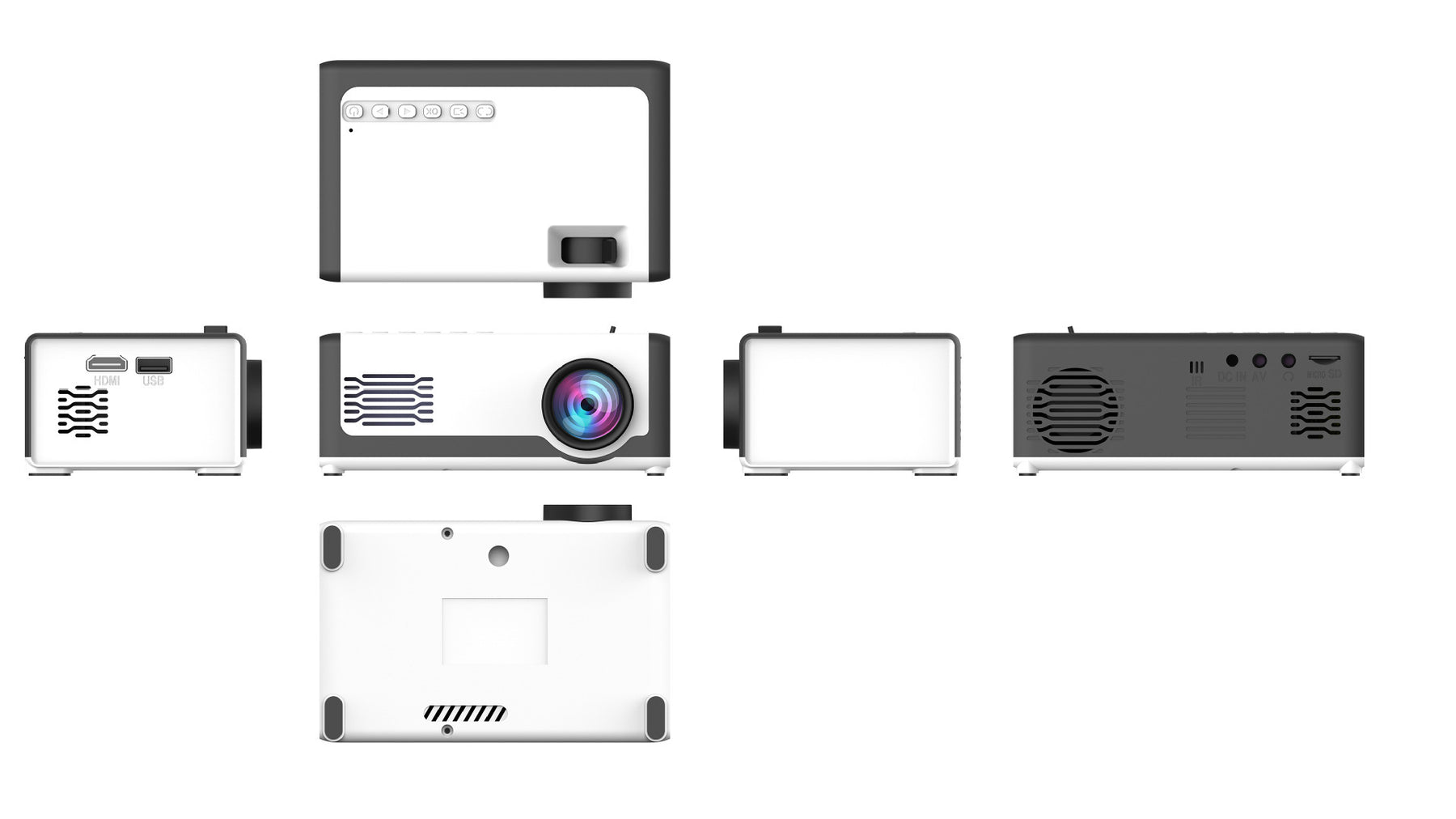 Item No.: M1 Operating system: no operating system Resolution: 24W Brightness: Below 99 lumens Screen ratio: 4:3 16:9 Input port: AV/HDMI/USB/SD, TF card Output port: 2.0 LCD Speaker: 1 Plug and play: support Zoom factor: 2 times Video format: VOB, RM, RMVB, MPEG-4, WMV, FLV, PAL, NTSC, SECAM, MP4, 3GP, H.264, MPEG-2, M4V, pmp, 1080P HD playback, support avi, M2TS and other format networks Video, EDTV (480p/576p), HDTV (720p, 1080i/p 60Hz), DIVD/DIVX, Real 8/9/10 Projection method: desktop front projection Projection technology: single-chip LCD Wireless projection function: not supported Adjustment function: manual focus Drop screen size: 10-60 inches Display scan frequency: 67.10Hz Power supply: external power supply Product size: 133x84x52mm packing list : Remote control, AV cable, charger, manual
